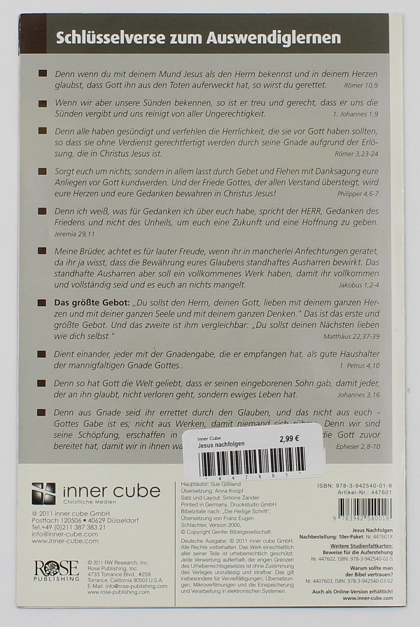 Auf insgesamt zwölf Seiten erfahren frisch gebackene Jesus-Nachfolger und andere interessierte Leser, worauf es bei den ersten Schritten im christlichen Glauben ankommt, wie man mit Schwierigkeiten umgeht, wie man weiter voran kommt – und vor allem, dass es auf dem Weg mit Jesus letztlich nicht ums Einhalten von Regeln geht, sondern um ein lebendige Beziehung zu einem barmherzigen und liebenden Gott.”