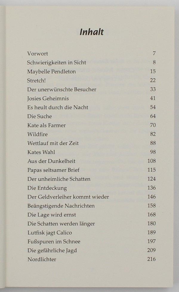 “Nach der Freude, Weihnachten gemeinsam mit Papa Nordstrom feiern zu können, folgt nun wieder ein Abschied. Papa muss zurück zu seiner gefährlichen Arbeit im Holzfällercamp. Kate O´Connell, die ihren leiblichen Vater durch einen Bauunfall verloren hat, macht sich Sorgen um Papas Sicherheit. Außerdem müssen sie in der schlimmsten Zeit des Winters ohne Papa zurechtkommen – und das, obwohl immer wieder Wölfe um die Farm streifen.